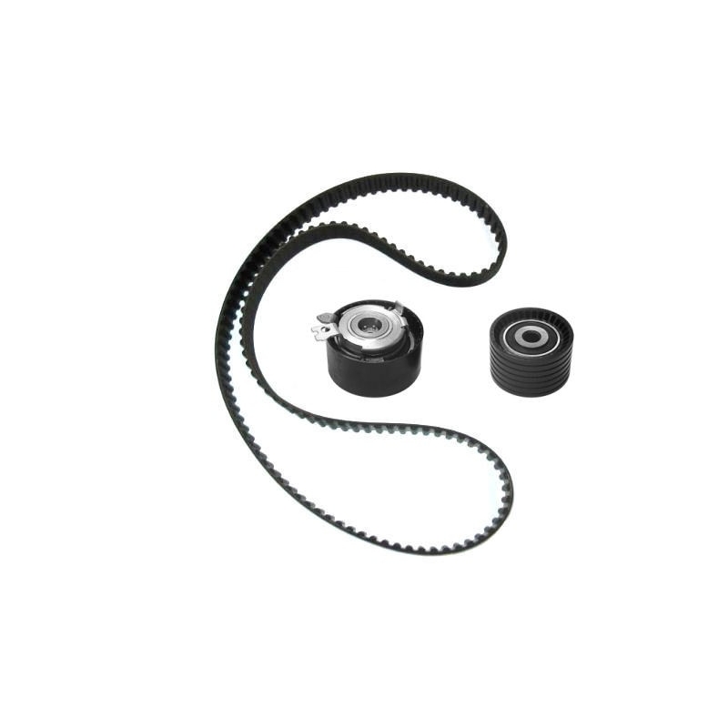 Kit complet avec courroie, 2 galets (tendeur et enrouleur), les 2 écrous de poulies d'arbres à cames et la vis de poulie damper.
